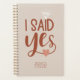 Planejador de casamento da futura Sra. Eu disse sim planejador com uma fofa tipografia colorida com ferrugem com os contornos de um diamante e um pouco de coração. Planeador de casamento de amêndoa bege com tipografia vermelha ferrugem.