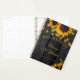 Rustic country sunflower wedding planner featuring strings of twinkle lights and big sunflowers on a dark brown barn wood background. It can be a beautiful bridal shower gift for the bride.