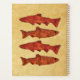 Uma renderização digital de quatro trutas voltadas para direções opostas, com um olhar antigo e rústico, sobreposta a uma imagem antiga de fundo de papel. Há dois locais para você personalizar adicionando seu próprio texto.