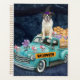 Um lindo Santo Bernard Dog sentado no caminhão do Halloween com crânios é uma ideia perfeita de presente de Halloween para alguém que ama cachorros.