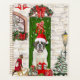 O Natal do santo Bernard Dog sentado do lado de fora da casa decorada com coroa de Natal, a árvore de Natal é uma ideia perfeita de presente de Natal para amantes de cães.