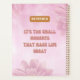 Imaginem isto: estão a ter um dia difícil, os prazos estão a acumular-se, e veem o vosso planejador. BAM! Aqui está ela em bonito rosa - "São os pequenos momentos que fazem a vida excelente." De repente, lembras-te daquela xícara de café que tomaste esta manhã ou daquela mensagem engraçada da tua bestie. Assim, seu dia fica um pouco mais brilhante. O design cor-de-rosa macio com flores bonitinhas não é bonito de olhar (embora seja totalmente). É como um abraço quente para seus olhos toda vez que você o vê. E o vamos é real, nós poderíamos usar mais desses, certo? Pegue um para si próprio ou dê a alguém que possa usar uma dose diária de positividade.
