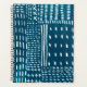 Sashiko Stitches III de Chariklia Zarris. Possui linhas e formas contra um fundo azul contrastante.