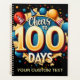 Celebre 100 dias de escola com este design alegre e festivo! Apresentando balões coloridos, chapéus de festas e uma mensagem comemorativa, é a maneira perfeita de marcar este marco. Personalize-o com a sua mensagem.