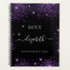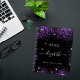 Fundo preto, texto branco. Decorado com pó de brilho púrpura. Personalize e adicione um ano, seu nome e título. O nome é escrito com um moderno estilo escrito à mão com traços. Para manter as hastes, exclua apenas o nome da amostra, deixe os espaços ou emoji na frente e depois do nome.