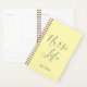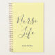 Acompanhe o seu agendamento ocupado em estilo com este Planejador Personalizado de Script Amarelo para Enfermeiro Life Medical. É um design moderno com o texto "vida enfermeira" em um guião alfanumérico com letras maiúsculas e cinzas centrado na frente de um planejador personalizável amarelo pastel. O nome está na parte inferior frontal. Clique na opção personalizar e digite o nome.