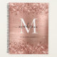 Planner de Monograma de Script Raiz Rosa Rosa Rosa Dourada Brilhante Bruta de Metal Girassol