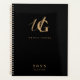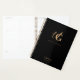 Escrito monograma de ouro minimalista contra fundo preto. Personalize facilmente o nome e o monograma da escolha na frente e no verso.
