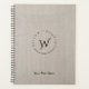 Um belo design de monograma usando seu nome e inicial em forma de círculo clássico. Uma textura de linha bege falsa no fundo com sotaques pretos cria um estilo único. Personalize o monograma e o texto e torne-o seu. Material de papelaria ideal e material escolar. Outras cores de linho oferecidas nesta design.