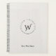 Um belo design de monograma usando seu nome e inicial em forma de círculo clássico. Uma textura branca de linho azul no fundo com sotaques pretos cria estilos únicos. Personalize o monograma e o texto e torne-o seu. Material de papelaria ideal e material escolar. Outras cores de linho oferecidas nesta design.