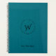 Um belo design de monograma usando seu nome e inicial em forma de círculo clássico. Uma textura azul de linho azul no fundo com sotaques pretos cria estilos únicos. Personalize o monograma e o texto e torne-o seu. Material de papelaria ideal e material escolar. Outras cores de linho oferecidas nesta design.