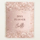 Um fundo metálico rosa dourado falso com brilho falso, brilhos. Personalize e adicione um nome. O nome é escrito em ouro rosa escuro com um grande guião escrito à mão moderno, estilo de assinatura. Perfeito para a escola, o trabalho ou a organização da sua vida pessoal/familiar.