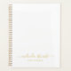Planejador Moderno Profissional com nome no estilo de fonte de script moderno dourado com texto personalizado no estilo de fonte sans serif dourado em fundo branco.
