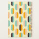 A seamless geometric pattern features vertical, oval shapes in soft yellow, teal, peach, orange, and brown, creating a retro, playful vibe.