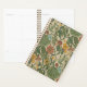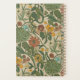 Seamless vintage botanical pattern featuring winding green vines, leaves, and stylized flowers in shades of orange, yellow, white, and muted blue against a beige background.