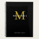 Planeador mensal semanal não-tratado em chic black. Apresentando um monograma personalizado com nome em ouro e branco.