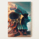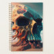 A large skull sits on top of the sand in the ocean, in the style of surreal 3d landscapes, intense color palette, redshift, vibrant illustrations, photo-realistic landscapes, textural explorations