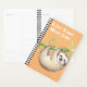 Um planejador divertido para todas as suas datas importantes, compromissos e rastreamento de metas, apresentando uma ilustração de uma cor d'água branca de uma preguiça feliz pendurada de galho no fundo de pêssego. Personalizar com nome ou título personalizado
