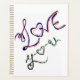 The image shows a hand‑drawn design with the word “love you” written in cursive inside it. The heart has a red outline, a small red heart near the center, green leaf accents, and decorative blue and black line details.