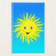 Sol bonito no estilo de desenho animado num céu azul. Ideia para pessoas de todas as idades.