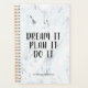 Um planejador bonito para ajudá-lo a colocar seus objetivos em ação. Esta é uma design típica simples com a frase "Sonhe, Planeje, Faça" em letra de estilo escrita em pincel preto sobre um fundo de mármore preto e branco. Personalize com seu nome abaixo. Faz um presente de excelente.