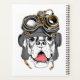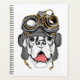 Este design apresenta um retrato de cão de boxer num capacete Steampunk.