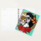 Um crânio de açúcar se senta atrás de uma mulher vestindo um dia da maquiagem do crânio de açúcar morto. Estilo Art Nouveau.