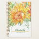 Buquê Floral Dourado Anualmente Planejador Semanal Mensal Este design apresenta um elegante, atordoante, e vibrante arranjo brilhante de girassóis de cor d'água e pode ser personalizado com seu nome e ano de seu planejador. Observe que o buquê floral não pode ser alterado, movido e/ou excluído. Está fixo.
