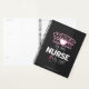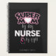 Super Mãe por Enfermeira do Dia pela Noite. Super-mãe em letra rosa maiúscula com um coração rosa e branco com enfermeira de dia a dia, à noite, em letras mestiças e letras maiúsculas em branco. Um estetoscópio cor-de-rosa pendura da letra u em NURSE.