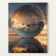 Surreal visualization of a giant reflective sphere containing glowing clouds and sunset mirrored over a calm lake surface. Perfect for concept art, 3D visualization, digital matte paintings, and creative projects requiring surreal reflective elements.