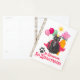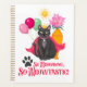 Esta é uma ilustração bonita e colorida de um gato preto com superpoderes de sua altura real cercado por balões e flores. Ele é legal e fantástico!