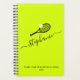 Um monograma elegante de tênis feminina em um planejador personalizado, sem data, com um nome de script elegante em um fundo amarelo brilhante, verde e preto que pode ser editado a qualquer cor, perfeito para jogador tênis, treinador, instrutor, ou conselheiro de campo ou novo membro da equipe.