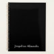 Simples preto e branco preto e giro branco, nome de script casual manuscrito, texto, monograma ou Planejador personalizado do ano. Texto branco personalizado sobre fundo preto de cor sólida e clara.