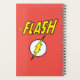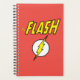 Check out this iconic logo for The Flash, featuring his name in telescopic speed style over the bright yellow lightning bolt in circle icon!