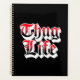 This graphic features a bold, urban aesthetic centered around the iconic "Thug Life" phrase. The design uses a classic Old English/Gothic calligraphy font, creating a look that feels both vintage and rebellious.