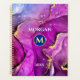 Agenda Tinta líquida violeta vermelha e Dourada, monogram