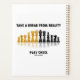 Mostre seu lado reflexivo como um jogador de xadrez com uma dose de humor de xadrez intenso com este planejador com um jogo de xadrez reflexivo junto com o seguinte ditado: "Tire Uma Quebra do Xadrez Realista". Jogadores ávidos de xadrez e professores de xadrez - especialmente aqueles que entendem o benefício recreativo que jogar xadrez pode proporcionar - vão desfrutar deste sólido planejador de xadrez!