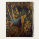 Um grande alce desportivo com grandes galhos de troféus durante o outono. Um sonho de caçador de alces! Cores de queda nas árvores da floresta ao redor criam o perfeito cenário natural de natureza selvagem para este animal de grandes jogos da América do Norte favorito. Trabalho de arte realista criada de uma pintura original de óleo por vida selvagem e artista equino Crista S. Forest.