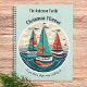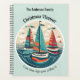 Prepare-se para a época de férias em estilo náutico com este útil planejador de Natal. O cobrir da frente mostra uma ilustração da tradicional canção de Natal "Vi Três Navios", com três embarcações de navegação coloridas no oceano. A imagem é limitada por um círculo, dando a aparência de uma vista através de um retângulo. O título "Planeador de Natal" está na tipografia da escrita, enquanto as palavras em itálico abaixo são a primeira linha do carol. Personalize com um nome ou outro texto no topo.