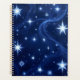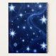 night sky filled with glowing stars and snowflakes in various sizes and styles. Set against a deep blue backdrop, the bright white and icy blue elements create a striking contrast. Wispy, wave-like light trails weave through the composition, adding motion and depth. The overall effect is magical and wintery—evoking a sense of wonder, serenity, and seasonal charm.