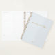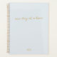 Um planejador elegante com roteiro manuscrito, tipografia informal casual em ouro "um dia de cada vez", com monograma personalizado em ouro sobre fundo azul em pó. O planejador perfeito para organizar sua vida!