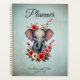 Um toque de verão: O bebê elefante num mar de flores . Essa design encantadora apresenta uma ilustração amorosa de um pequeno elefante bebê, pintado em delicadas sombras de cinza. Suas orelhas cor-de-rosa acrescentam um toque divertido e encantador. Seus olhos grandes e expressivos irradiam curiosidade e amizade, enquanto sua doce expressão facial transmite puro calor. O elefante se encaixa gentilmente entre uma variedade de flores coloridas em tons vibrantes de vermelho, laranja, rosa e branco.