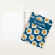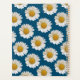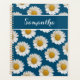 Um padrão de margaridas brancas sobre fundo azul com um modelo para nome próprio.
