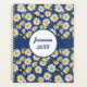 Margaridas bonitas, pequenas e brancas com centros amarelos brilhantes em fundo azul criam um planejador simples e doce.
