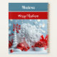 "This sophisticated and artistic design captures a breathtaking arrangement of Christmas elements in a clean white and striking red palette. The focal point is a large, multi-layered white snowflake-like flower, beautifully contrasted by vibrant red holly leaves, berries, and glistening ornaments. The 3D styling and snowy, blue-toned background create a dreamy, high-end seasonal feel. This graphic is perfect for luxury holiday invitations, decorative wall calendars, elegant gift boxes, premium coffee table books or magazines, or any product aiming to convey a luxurious and distinctive winter aesthetic."