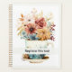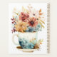 Um belo presente para alguém que ama flores e uma xícara de café ou chá. Dentro na xícara que cobrir este planejador você pode ver muitas flores diferentes em azul, vermelho, amarelo e rosa.