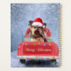 Um caminhão de Natal passando por neve entregando presentes de Natal e um cão terrier do yorkshire. Uma ideia perfeita de presente de Natal para alguém que ama esta raça de cães.