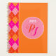 Agenda Yuppie Preppy Esportes Laranja Cor-de-Rosa Monogra