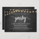 Agora é hora de festa, Anúncio de Casamento Fuga / Cartão de convite, em quadro de giz de fazenda rústica, design de luzes de corda. Isso é perfeito para o seu casamento e festa de celebração pós-casamento. Adicione seus detalhes no tipo de letra correspondente.