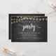 Agora é hora de festa, Anúncio de Elopamento / Convite de casamento, em quadro de giz de fazenda rústica, design de luzes de corda. Isso é perfeito para o seu casamento e festa de celebração pós-casamento. Adicione seus detalhes no tipo de letra correspondente.